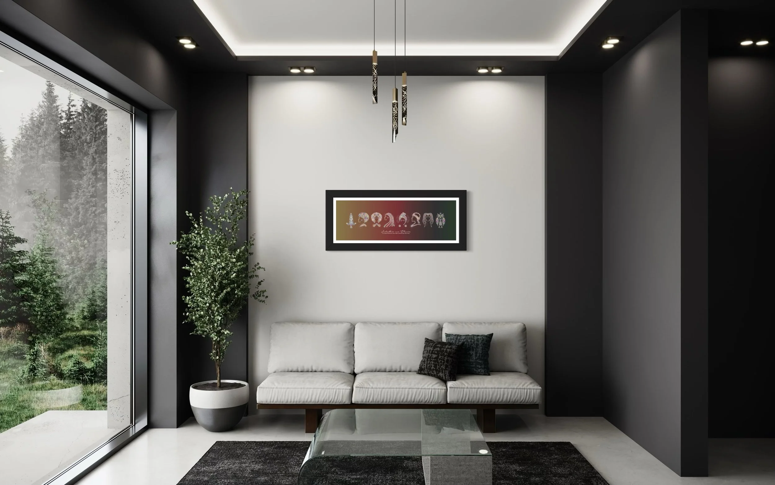 Mianzo ya Binadamu, “Origins of Humanity,” is the core of the art series. These pieces bring together all six queens and the enduring emblems of intellect and bravery. Mianzo ya Binadamu is offered in four diasporic backgrounds. Whether gifted to a rising young queen finding her voice or a grandmother whose reign has shaped generations, Malkia wa Dunia stands as a timeless expression of pride, power, and heritage.