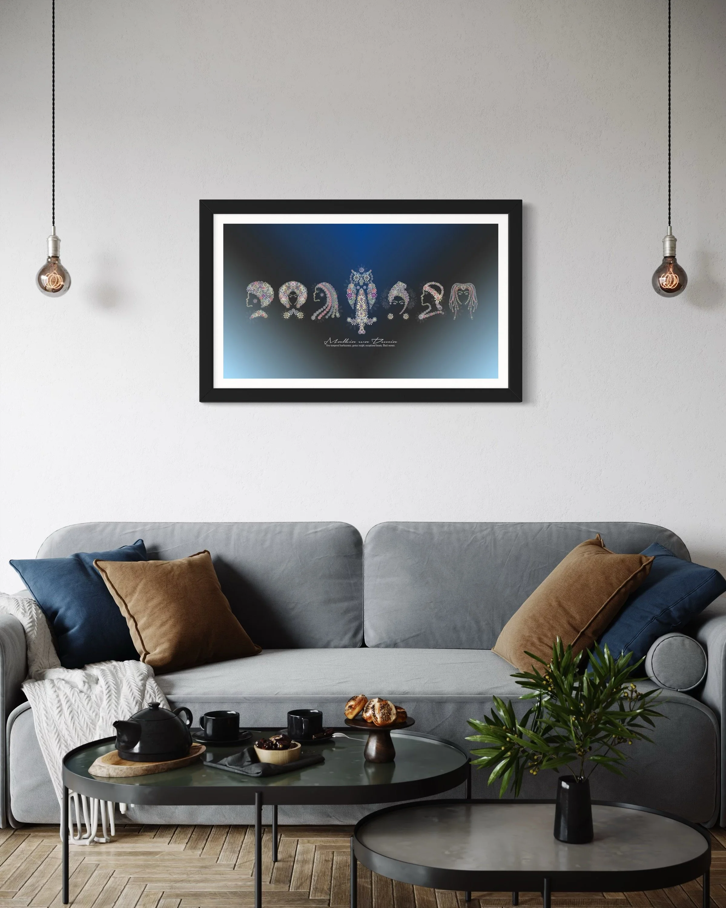 Woven throughout Malkia wa Dunia are the innate brilliance and boundless bravery of Black queens. The great horned owl watches with ancestral eyes—piercing, perceptive, unafraid. The sword gleams with intention, its arc a testament to lionhearted valor and uncompromising protection. For what are Black women, if not the first defenders of lineage, legacy and culture.
